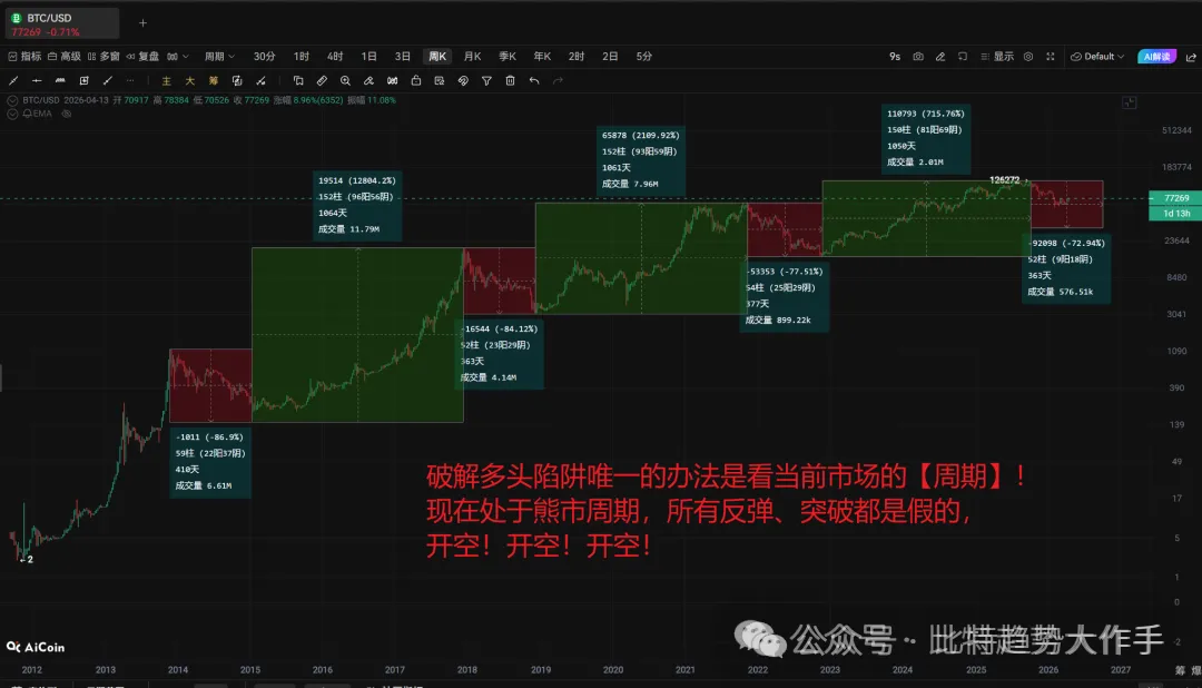 这个市场从来不奖励勤奋的“绘图员”,它只奖励那些看清大势、顺应天道的猎人。与其研究那个随时会被大资金定点爆破的“楔形”,不如静下心来好好复盘一下过去十几年比特币是怎么走的。
